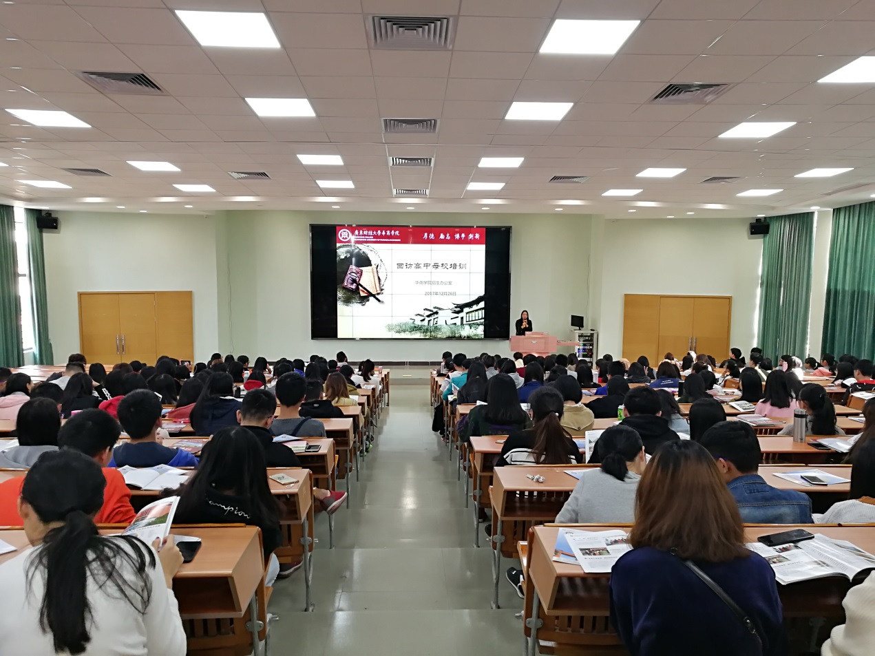 12月26日下午,我院招生办在励志楼C408阶梯教室召开回访高中母校活动培训会。学院招生办副主任姚见花,港澳台侨招生办主任黄伟新,华商启德学府国际学院院长赵迅,学院办公室熊子珂老师,招生办冯勤奋老师,以及107组回访团队共260多人参加了培训会。