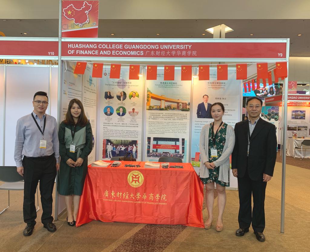 为进一步推进华商教育集团的品牌战略和扩大国际影响力,积极响应国家“一带一路”教育行动,推动中国与泰国之间的学生交流和校际合作,在廖榕就董事长、主管副校长廖伊曼的支持和指导下,2019年11月2-3日,广东财经大学华商学院国际交流与合作处处长王文忠、校长助理兼外国留学生招生办主任黄伟新,以及澳洲国际商学院(GBCA)中国区代表熊子珂、江燕一行,赴泰国曼谷参加了由泰国文官委员会主办的2019OCSC国际教育博览会。