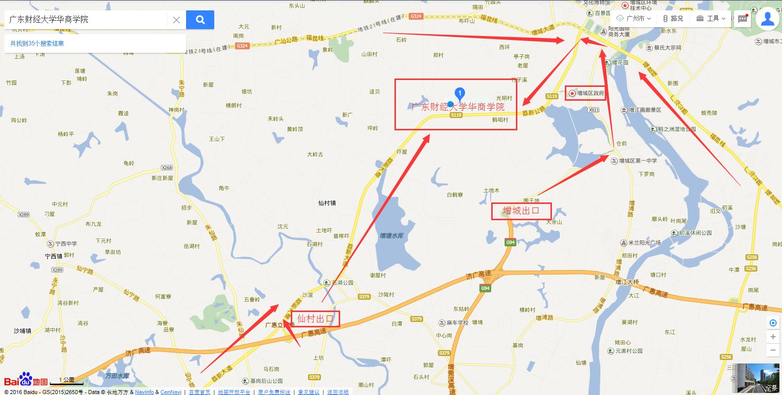说了那么多自驾的线路,是不是有点晕?其实只需一个秘籍:那就是在出发之前,只要设置导航到广州市增城区“广东财经大学华商学院”,导航哥就会带着你来到大华商了。