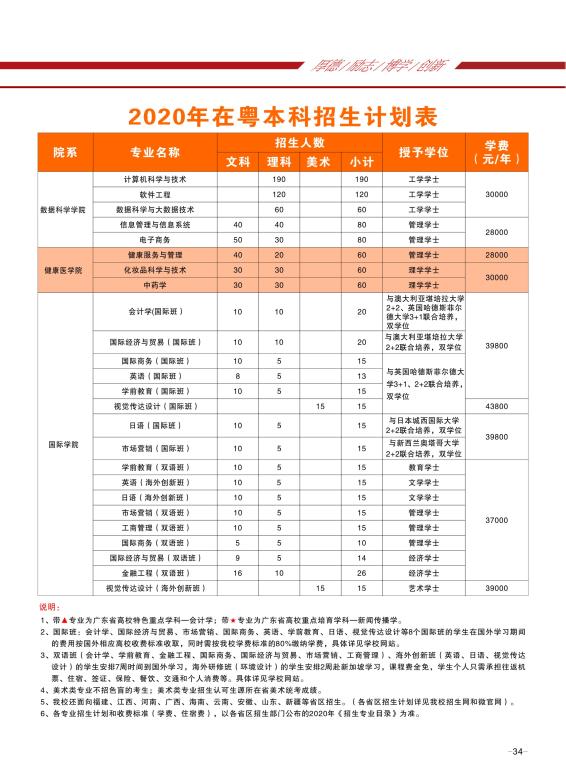 ●注意事项:广东省内考生填报志愿时,需要在广东省招生办公室编印的《广东省2020年普通高等学校招生专业目录》(文科艺术版)或(理科体育版)中查阅学校的招生专业、专业代码、招生计划等信息。