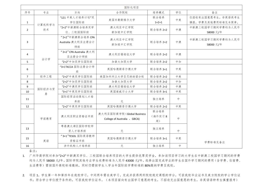广州华商学院2025年国际招生项目